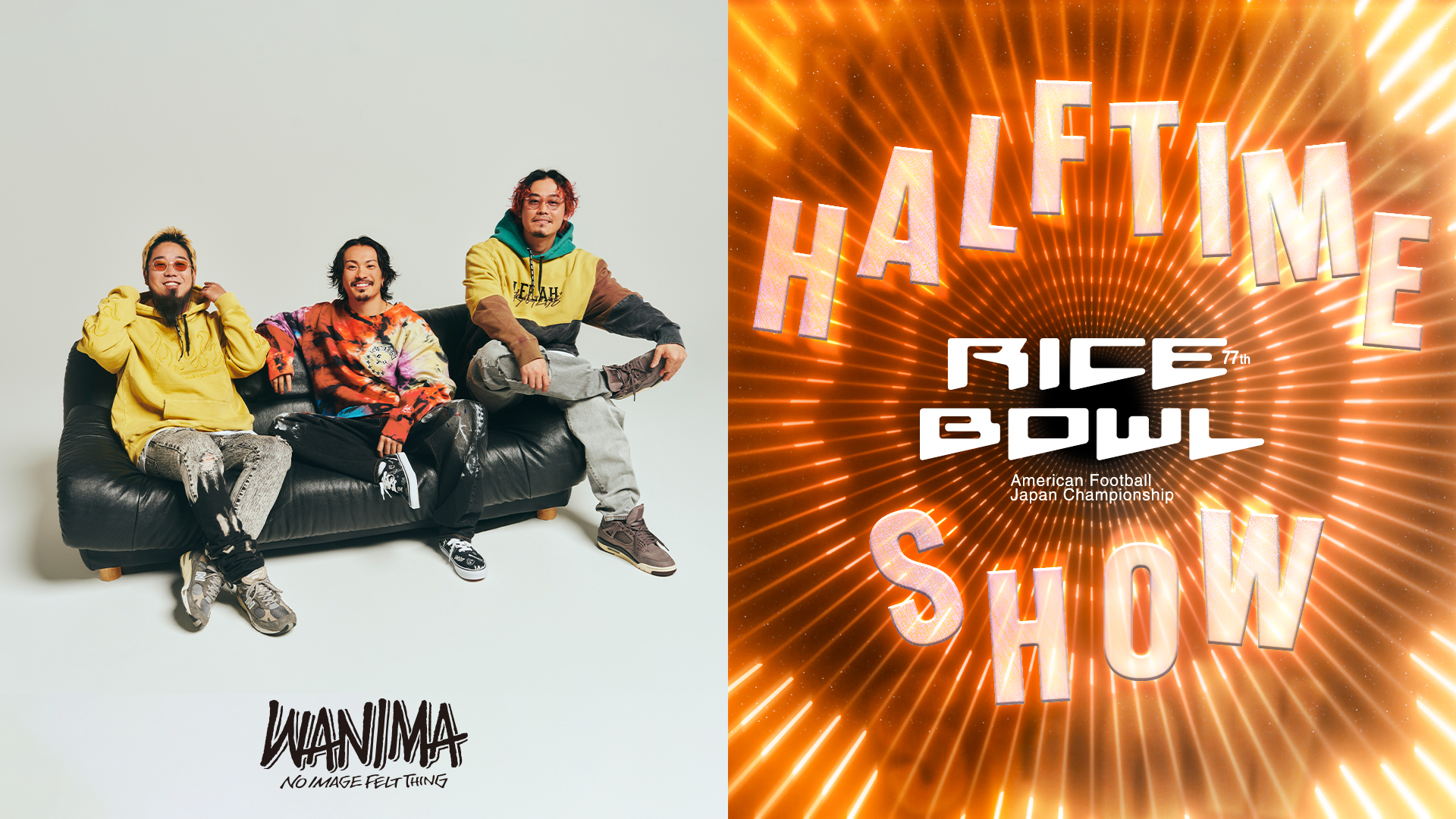 2024年 1 月3 日(水)に東京ドームで開催される「アメリカンフットボール日本選手権 プルデンシャル生命杯第77回ライスボウル」のハーフタイムショーに「WANIMA」の出演が決定しました。