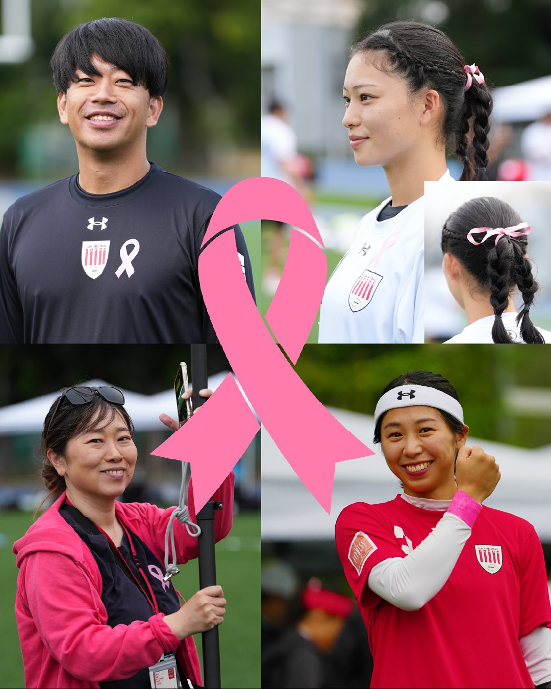 10月は「ピンクリボン月間」ということで、フラッグフットボールJAPANでは、「ピンクリボン運動」を行っていきます。「ピンクリボン運動」とは、乳がんについての正しい知識を多くの人に知ってもらい、乳がんから引き起こされる悲しみから一人でも多くの人を守る活動で、1980年代に米国で始まりました。