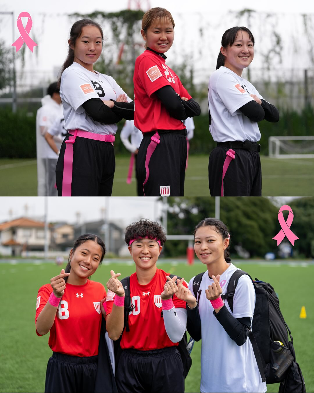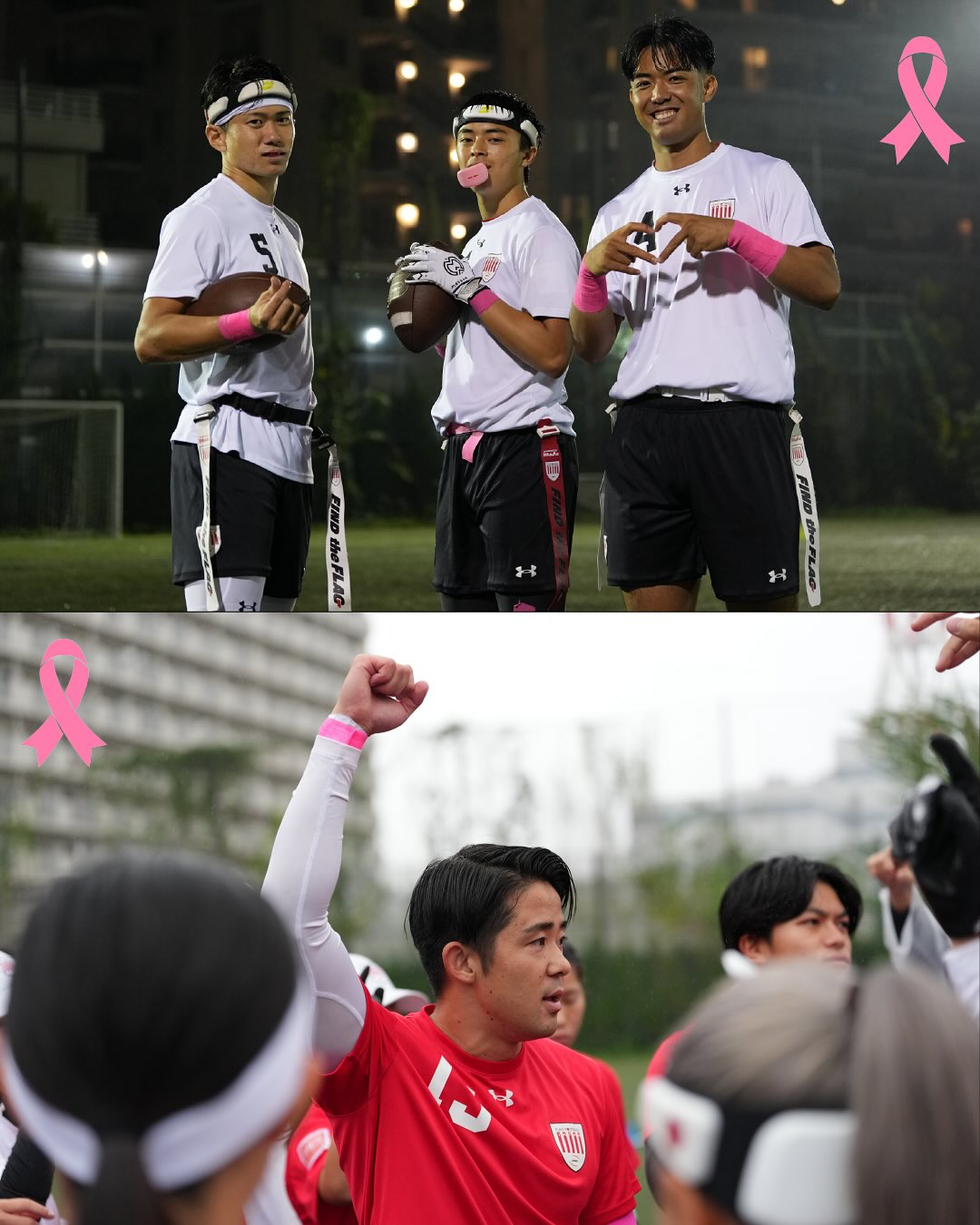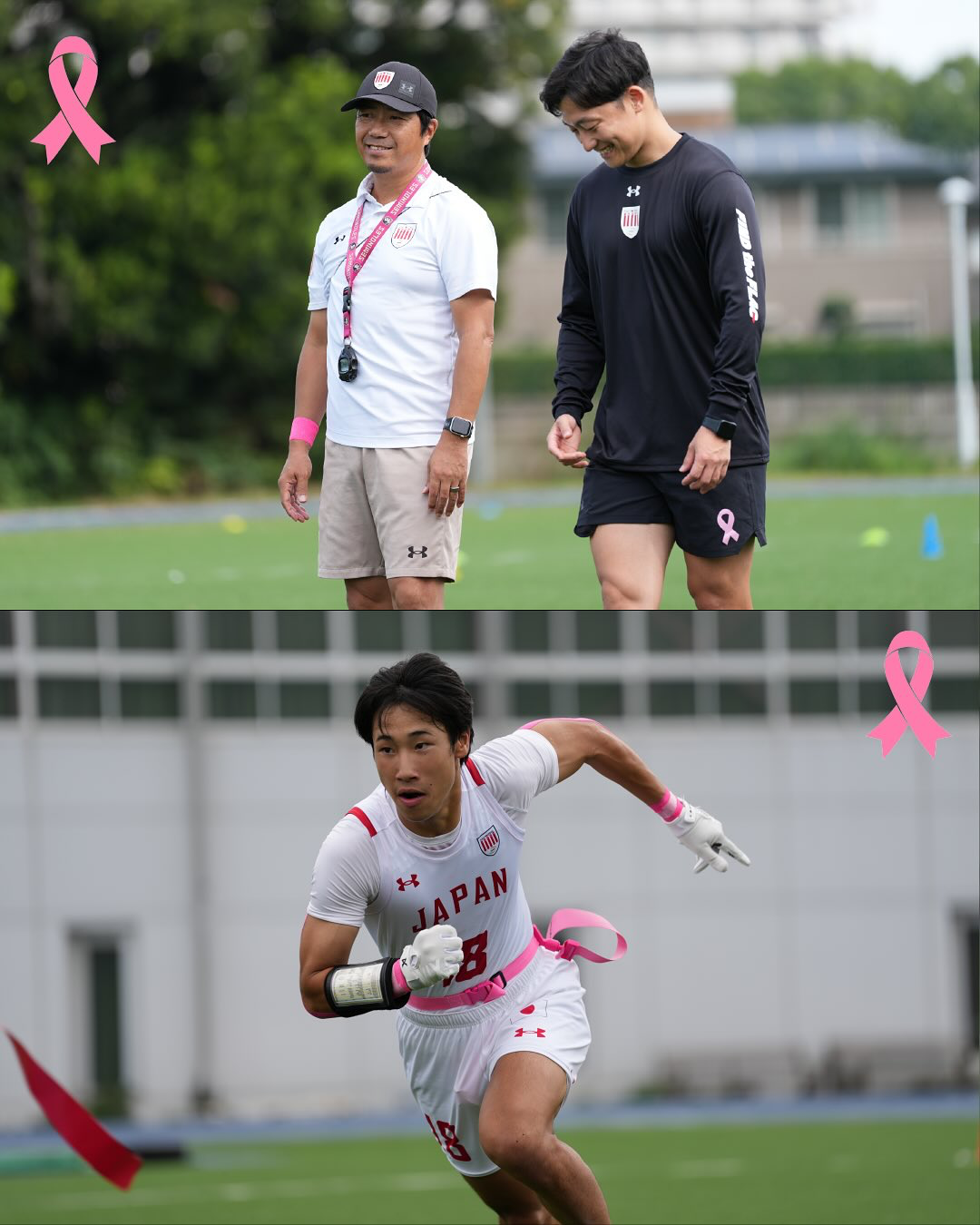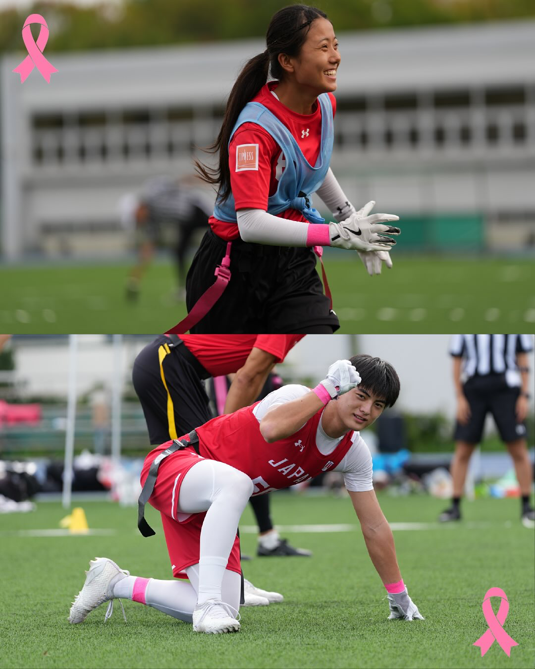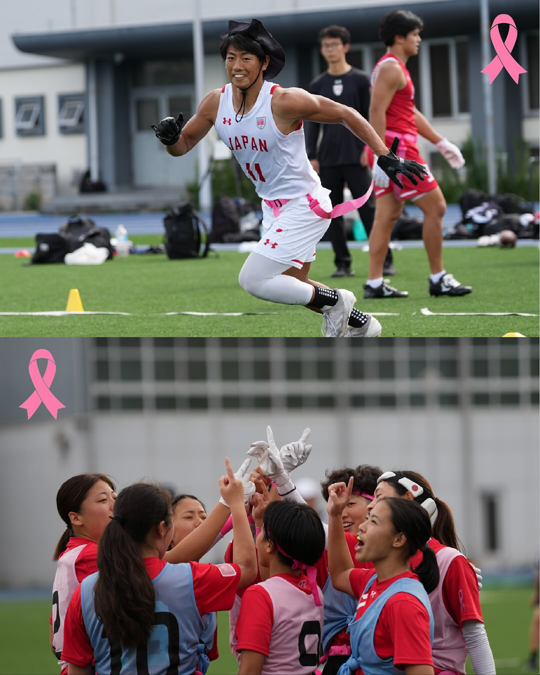 また、強化練習や活動の中で、選手やスタッフらがピンク色のテーピングや装具を身に着けました。今月24日から中国・寧波で行われるアジア・オセアニア大陸選手権でも、日本代表選手らがピンク色のテーピングなどを巻く予定です。フラッグフットボールJAPANは、スポーツを通じて「自分の身体と向き合う大切さ」を伝え、健康への意識が広がることを願っています。