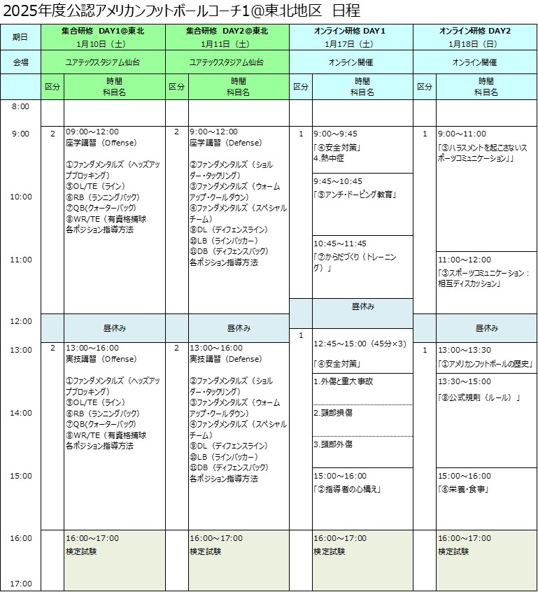 ※ 講習及び試験の免除措置については、日本アメリカンフットボール協会が定める基準によります。