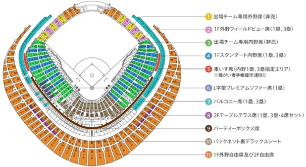 | 1F 外野フィールドビュー席 | ¥4,800 | ¥5,800 |